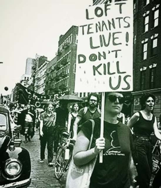 More immediately, the loft movement was expanding geographically. As SoHo became expensive, artists and other residents moved into adjacent manufacturing districts: NoHo (North of Houston Street, my neighborhood), Tribeca, Chelsea, the Flower District, the garment district lofts north of Penn Station, sections of Long Island City in Queens, Williamsburg and DUMBO in Brooklyn. SoHo’s 1971 AIR zoning designation had acknowledged that artists lived there; but it had not fully protected them. These newer communities were in the same position—no rent protections, no eviction safeguards, no code requirements—and faced landlords emboldened by rising real estate values who were determined to cash in by evicting existing tenants and converting to luxury residential or commercial use.
