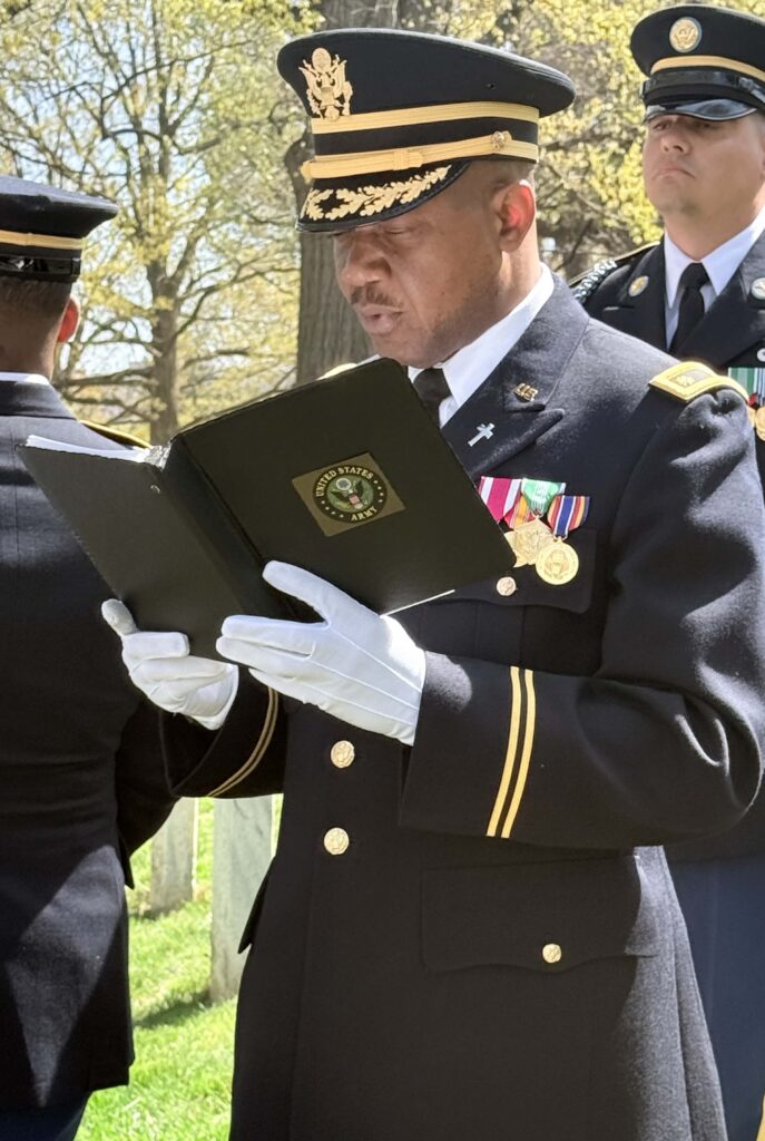 The chaplain comes forward and reads a brief history of my uncle’s service: